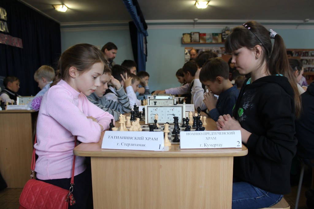 15 ноября в ЦДР «Спас» при Свято-Никольском кафедральном соборе г. Стерлитамака состоялся командный шахматный турнир среди учащихся детских Воскресных школ «Под державным Покровом – 2015» . Соревнование проводилось по благословению Высокопреосвященнейшего митрополита Никона под общим руководством Отдела воскресных школ Уфимской епархии. Командный турнир воскресных школ проводится уже в четвёртый раз и собрал участников со всех трех епархий Башкортостанской митрополии. В соревновании приняли участие 20 команд из городов и сёл : Уфы, Стерлитамака, Кумертау, Межгорье, Архангельское, Булгаково, Толбазы, Чесноковка, Ярославка Общее число участников составило 40 детей 2001 г.р. и младше. Первое место в турнире второй раз подряд заняла команда ВШ храма Успения Божией Матери с. Ярославка Дуванского р-на Нефтекамской епархии (Сычев Михаил, Токарев Илья). Второе место-команда ВШ Покровского храма г. Уфы Тавлияров Петр, Иванов Илья. Третье место- команда ВШ Никольского собора г. Стерлитамак Климик Кирилл , Егоров Георгий. Команда, победившая в турнире, получила переходящий Кубок, который в течение полугода будет храниться в воскресной школе Успенского храма с. Ярославка. Руководитель и тренер команды (протоиерей Николай Тымчук и Александр Алексеевич Цепилов) проделали с детьми огромный 7-ми часовой путь из Дуванского района до места проведения турнира. Труды настоятеля и тренера увенчались заслуженным успехом. Дети занимаются шахматами в сельском Доме детского творчества и параллельно познают основы веры в Воскресной школе. Воспитанники Воскресной школы «Родничок» Иоанно — Предтеченского соборного храма г.Кумертау Артёмова Валерия, Гупалов Дмитрий, Кудашев Иван и Савельев Кирилл, под руководством наставника Никитенко Дмитрия Владимировича, приняли в нем активное участие. Наши юные шахматисты поделили 6-7 место, команда была награждена сладкими призами и Благодарственным письмом отдела по работе с Воскресными школами Уфимской епархии. Турнир прошел в дружественной спокойной атмосфере. Отдельную благодарность выразил организатор турнира протоиерей Вадим Гупало заведующему шахматного клуба города Кумертау Кузнецову Владиславу Михайловичу за помощь с шахматным инвентарём.